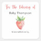 Carte d'invitation pour une baby shower mignonne avec une illustration aquarelle de fraises. Le texte dit "un bébé bien sucré arrive bientôt". Articles assortis disponibles.