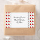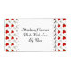 Un étiquette de conserves ou de savon personnalisé avec des lettres de script personnalisées et un motif rétro de fraises rouges et de fleurs de fraises blanches.