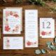 Faire-part de mariage illustrée à la main avec fleurs audacieuses d'inspiration rétro dans une palette de couleurs tendance.