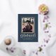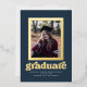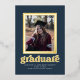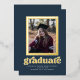 Cette faire-part/invitation à la remise de diplômes élégante présente un cadre en papier réel autour d'une seule photo sur un arrière - plan bleu foncé. Le mot "diplômé" est aussi un papier d'aluminium. L'arrière de la carte a de l'espace pour une deuxième photo.