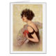 Une illustration vintage de Tito Corbella est le portrait d'un beau jeune lampadaire aux boucles courtes et foncées. Elle porte un bandeau perlé et un rouge à lèvres. Sa robe est noire avec les épaules nues, les bras et le dos, et elle tient une fleur rouge à la poitrine. L'artiste, Tito Corbella (1885-1966), est né à Pontremoli, Italie et est mort à Rome, Italie. Il signe son oeuvre comme "T. Corbella" et était plus célèbre pour son style art déco italien. Son amour pour les belles femmes, la mode et le glamour est évident dans les plus de 300 images qu'il a peintes qui étaient souvent utilisées sur les cartes postales. Cette carte est vide à l'intérieur pour votre propre message.