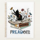 FREADOM - J'ai lu Livres Interdits T-Shirt à thème, Citation drôle pour la lecture, ver de livre, bibliothécaire, enseignant. Chat noir avec fleurs et papillons lisant des livres interdits. Mignonne pour le message anti-censure dans un design cottagecore mignon avec des fleurs et une jolie silhouette de chat.