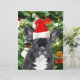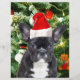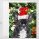 Mignonne Chien-taureau français avec ornements d'arbre de Noël Homme de neige en arrière - plan.