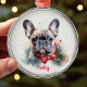 Mignonne ornement de Noël de Bulldog français pour votre Frenchie ! L'aquarelle originale de Nicole. Personnalisez avec un nom personnalisé.