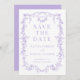 French Victorian wedding save the date featuring elegant purple lilac tones and vintage inspired detailing. Designed for classic, romantic, and antique style weddings with a refined European aesthetic. Perfect for formal ceremonies, garden weddings, and vintage themed celebrations, offering a timeless way to announce your wedding date while coordinating with a cohesive stationery suite.