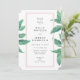 Faire-part de mariage Feuille vert Tropical Beach Island avec tableaux originaux et cadre rose tendance. Beau cadre feuille vert peint à la main sur un arrière - plan rose créant un design tendance, tropical et moderne. Mariages de plage et Mariages de l'île. Fraîche et simple avec un cadre rose tendance.