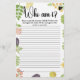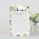 Fresh Off the Market Who Am I Game | Fête des mariées amusante activité coupe-glace Aidez vos invités à se mêler et à se connecter avec notre "Fresh Off The Market" Qui suis-je Fête des mariées jeu! Ce brise-glace interactif est un complément parfait à votre marché agricole, jardin ou douche nuptiale à thème rustique. Doté de produits artisanaux et de flores d'aquarelle délicieuses, il s'ajoute à merveille à votre esthétique naturelle et fraîche. Voici comment jouer : Les invités reçoivent une carte de jeu et sont invités à noter un fait sur eux-mêmes ou leur relation avec la mariée sans écrire leur nom. Les cartes sont collectées, et l'hôte lit chaque fait à haute voix. Vous devinez alors qui a écrit ce fait ! C'est une façon fantastique pour les clients d'en apprendre davantage sur les uns et les autres et de trouver des liens au sein du groupe, surtout quand tout le monde ne se connaît pas bien. La carte de jeu "Who Am I" permet aux clients d'écrire leurs faits anonymes dans un design attrayant et thématique. Il s'agit d'une activité facile à mettre en place et qui encourage les invités à interagir et à apprendre des détails amusants sur les autres. Coordonner ce jeu engageant de manière transparente avec d'autres articles de notre collection "Fresh Off The Market", tels que des invitations, d'autres cartes de jeu et des panneaux, pour un thème d'événement magnifiquement cohésif et divertissant. Customisez facilement la carte de jeu en ajoutant le nom de la mariée, la date de l'événement, ou en fournissant une invite spécifique pour le fait que les invités devraient partager (par exemple, "Mon souvenir préféré avec la mariée est..."). Disponible en version imprimée sur des cartes premium ou en téléchargement numérique à la maison. Cliquez sur "Customiser maintenant" pour personnaliser vos cartes Fresh Off Market Who Am I Game et ajouter une touche de mystère et de se mêler à votre douche nuptiale! qui sont i jeu nuptiale, brise-glace nuptiale douche nuptiale, frais off market jeu, fermiers marché activité nuptiale, jeu de mariage rustique, jeu de jardin à thème, imprimable qui est i, apprendre à vous jeu, faits amusants douche jeu de douche jeu, jeu