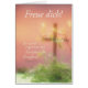 Eine sehr schöne religiöse Ostergrußkarte mit einem großen Kreuz und grünen Pflanzen, alle auf einem rosa Hintergrund mit weißer Schrift.