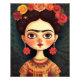 Poster colorido de Frida Kahlo, ilustración estilo cartoon de arte mexicano. Ideal para decorar todo tipo de estancias.