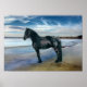 Belle muraille avec un extraordinaire cheval friésien sur une plage magnifique !