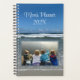 Ocean view, spiral bound planner with horizontal (landscape) photo template on the front. Blue sky and waves rolling in on a sandy beach is the photo behind your picture. Customize with a title, such as "Mom's planner - with year". Size 5.5 x 8.5 inches with a spiral binding and block pages for organizing life. Comes with a fun page of stickers. This coastal design also fits the larger size planner.