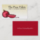 Cartes de visite rouges peu précis de grenade pour les chefs personnels ou privés, les boulangers et d'autre cuisine ou affaires de cuisson. Poms rouges entiers et découpés en tranches de framboise ronde avec des graines sur un arrière - plan de toile rugueux de motif.