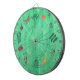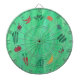 Peinture de divers fruits et légumes, sur un arrière - plan de vert mélangé, imprimée sur des tableaux de fléchettes. Les produits comprennent les épinards, les oranges, les bleuets, les concombres, les cerises, les bananes, les haricots à cordes, les carottes, les tomates, les asperges, la betterave et les patates douces.