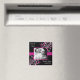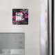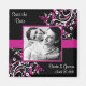 Magnet Réservez la date, avec votre photo sur une élégante arrière - plan tourbillonnante noire et fuchsia. Ajoutez votre photo et entrez vos informations dans notre template.com convivial.