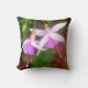 Belle, élégante et délicate photo de fleurs fuchsia de notre jardin. Les couleurs violettes, roses et blanches se fondent dans un arrière - plan doux et muet de verdure. Le design est à la fois à l'avant et à l'arrière de ce coussin. Magnifique, romantique et belle pour quiconque aime les fleurs.