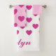 Serviettes de bain preppy avec motif de coeur dans la palette de couleurs roses. Cet ensemble est pour vous si vous êtes dans l'esthétique et la couleur rose y2k plus vous pouvez les customiser avec votre beau nom en polices élégantes manuscrites! Apportez de bonnes vibes à votre maison avec ce bel ensemble de serviettes.