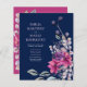 Belles invitations de mariage floral Fuchsia Pink et Navy Blue.