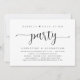 Carte d'invitation de mariage en écriture noire moderne, pour une fugue de mariage (fête de bonheur éternel). Elle est parfaite pour votre réception de mariage intime / fête de célébration après le mariage. Ajoutez vos détails dans la même police / lettrage noir.