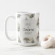 This festive mug features a soft watercolor pine forest wrapped around the cup, paired with playful typography that reads: