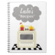 Un carnet de recette comportant une illustration d'un rétro fourneau inspiré se reposant sur une surface noire et blanche. Le pot et la casserole rouges sur le fourneau ont des flammes tirer de elles et un nuage de fumée plane au-dessus du fourneau. Une grande manière de rire de votre propre manque de compétence culinaire….reccomened comme cadeau pour d'autres ! Personnalisez avec votre nom.