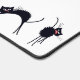 Le tapis de bureau est de 31 x 15 avec une surface antidérapante. Il présente une illustration de dessin animé d'un groupe de chats noirs ridicules qui courent à travers le tapis. Les chats sont de tailles et de formes différentes, et ils font toutes sortes de choses stupides. Les illustrations sont en noir avec un peu de rouge et ont des détails ludiques. Il est sûr d'apporter un sourire à votre visage chaque fois que vous le voyez.