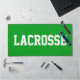 This sporty bold design features white athletic LACROSSE text against bright green background. The colors and text in this design can be personalized.