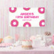 Fun beigne rose thème fête d'anniversaire bienvenue bannière signe. Modèle coloré avec dessin de beignets arrosés. Conception gaie pour la célébration des enfants.