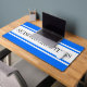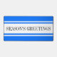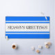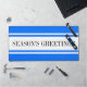Ce design élégant et sportif présente une bande blanche centrale avec des rayures blanches flottantes. Les rayures les plus extérieures sont bleu vif et le texte festif des "Bonnes Fêtes" peut être personnalisé.