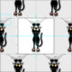 Fun Black Cat Cartoon a eu l'air stupéfait, parce qu'il est Tombé, pendu et gratte un tissu. Créé à l'origine sur Vector Graphic Art. Copyright Bluedarkat/BluedarkArt.