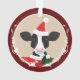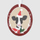Un ornement de Noël de vache avec une vache en tenue Père Noël dans des cadres ronds, décoratifs. L'ornement a un arrière - plan bordeaux et c'est tout simplement amusant. Fun Cow Père Noël Céramique de Noël Ornement Jour férié Design | ©Melissa Patton - Illustrateur/concepteur