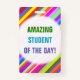 Cette conception amusante et encourageante de badge comporte le message "ÉTUDIANT EXTRAORDINAIRE DU JOUR !". Un badge comme celui-ci pourrait peut-être être utilisé pour reconnaître un étudiant qui a bien fait. [~Z0000317]