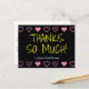 Cette carte postale de remerciement amusante comporte le message "MERCI BEAUCOUP !" sur le devant, ainsi qu'un message personnalisable sur le dos. Il présente également des formes cardiaques décoratives. Il pourrait être utilisé pour témoigner de l'appréciation à quelqu'un qui a fait quelque chose de spécial.