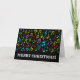 Cette carte de voeux de Noël amusante comporte le message "MERCI NOËL!" et des notes musicales et des symboles colorés sur le devant. L'intérieur est doté d'un message personnalisé. Une telle carte pourrait être utilisée pour envoyer des voeux de Noël à des amis ou à la famille.