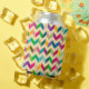 Ce glacière en mousse possède un amusant motif mini chevron aux couleurs arc-en-ciel d'inspiration rétro. Le motif coloré s'enroule entièrement autour de la boîte ou du glacière de bouteille et s'inspire des styles branchés des années 1970.