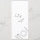 Elevate your reception tables with this minimalist wedding menu card, designed with a graceful blend of delicate script and classic serif typography. The simple “Let’s eat!” heading adds a playful yet refined touch, while the clean layout keeps each course beautifully organized and easy to read.