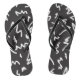Fun moderne noir et blanc Flip Flops avec rayures abstraites éparpillées sur l'arrière - plan noir.