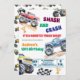 A cool Birthday theme with monster trucks! You can personalize this invitation with your own details.