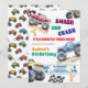 A cool Birthday theme with monster trucks! You can personalize this invitation with your own details.