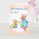 Une carte de voeux amusante pour la Fête des Mères pour votre grand-mère avec une petite souris, portant un tablier, donnant à sa grand-mère un gâteau au fromage pour la Fête des Mères. Les souris sont peintes à la main avec des crayons aquarelle et la couverture avant de l'accueil est : "HEUREUX JOUR DE LA MÈRE, grand-mère !" Le message intérieur n'est qu'une suggestion et vous pouvez facilement le modifier ou le supprimer si vous le souhaitez.