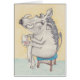 Le phacochère de dessin avec un cerceau de broderie, assis sur un tabouret, le poème à l'intérieur