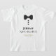 Ces t-shirts amusants sont conçus comme des faveurs ou des cadeaux pour les porteurs de bague mariages. Le t-shirt est blanc et présente l'image d'une cravate d'arc noir et trois boutons. Le texte indique Ring Bearer, et a un endroit pour entrer son nom ainsi que le nom du couple mariage et la date du mariage. Grand ajout à un sac de bagage mariage.