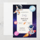 Blast off into an out-of-this-world celebration with this fun and vibrant space-themed kids’ birthday invitation! Featuring playful spacemen, colourful planets, and a galaxy full of adventure, this design is perfect for little explorers who dream of rockets and stars.