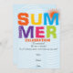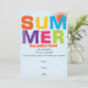 Cette invitation fantaisiste de solstice d'été a un arrière - plan bleu clair avec des vagues abstraites blanches comme l'eau. Au sommet, il y a un soleil brillant et les mots célébration du solstice d'été dans des pops de couleur brillants dans une police amusante. Votre texte personnalisable va à droite. Ce serait un grand invitation pour n'importe quel événement solstice d'été, fête de billard, barbecue, campement ou pique-nique !