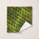 Imagens quadradas verde colocadas como se fossem tijolos em uma parede - inclinada -, onde as linhas amarelas, marrom ou douradas na volta das pequenas imagens podem parecer em alto pertinence ou parecer que o fundo é composto com as imagverdes e, parecendo estarem as pequenas imagens mais profundas que as linhas amarelo dourado, linhas que pode parecer um tipo de grade.