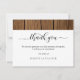 Envoyez cette belle carte de remerciements à vos amis, à votre famille, à votre mémorial, aux participants funéraires. Coordination de l'invitation à célébrer la vie, livre d'invités et exposition de photos commémoratives sont également disponibles. Design avec bois rustique magnifique sur le devant supérieur et utilisation de détails Calligraphie manuscrits modernes. Dos de carte en bois rustique élégant. Une partie de notre "Delicate Funeral, Memorial Collection"