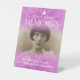 Photo hommage signe de souvenir à placer à côté des cartes sur lesquelles les invités peuvent écrire pour partager leurs souvenirs. Une belle idée pour un réveil et une célébration de la vie. Un rose mauve mauve mauve doux et mémorable partageant la signalisation des souvenirs, peut être personnalisé avec vos propres photos spéciales et détails d'instructions. Match partager les cartes mémoires sont également disponibles. Conception et photographie par www.mylittleeden.com