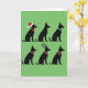 Souhaitez à quelqu'un un Joyeux Noël avec notre adorable carte de voeux sur le thème du chien! 🐶 🏼 🎄 Cette carte festive comporte une grille de six chiens noirs ludiques, chacun vêtu de leurs propres accessoires de Noël comme des chapeaux de Père Noël et des bois de rennes. Contre un arrière - plan vert citron vivant, l'illustration de dessin animé est vraiment à l'honneur pendant les fêtes. Le texte sur la carte est audacieux et gai, souhaitant au destinataire une joyeuse saison de vacances. Répandez les fêtes avec cette carte parfaite pour les amoureux de les chiens et apportez des sourires à tous ceux qui la reçoivent! 🎁 ✨