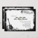 Arrière - plan de papier déchiré, guitare électrique, clef à trois, et personnel de musique sur ce faire-part de mariage noir et blanc amusant pour les amateurs de musique. Montré sur papier de lin, mais vous pouvez changer à n'importe quel type. Si vous avez une question ou une demande, ou si vous souhaitez obtenir d'autres produits correspondants, n'hésitez pas à me contacter à l'adresse riverjude.designs@yahoo.com — Je serai heureux de vous aider à personnaliser votre mariage.