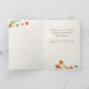 Une carte de voeux festive qui souhaite un Bon thanksgiving à ses proches, décorée de feuilles d'automne, de glands et d'un citrouille orange. A l'intérieur, le texte humoristique et drôle est modifiable et dit : "J'espère que vous et votre famille ne serez pas endormis par la dinde cette année. Profite De Ton Action De Grâce !"