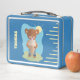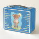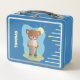 A funny metal lunch for elementary school kids featuring a brown bear eating an giant ice cream cone on a hot summer day . Personalize it with the child's name .